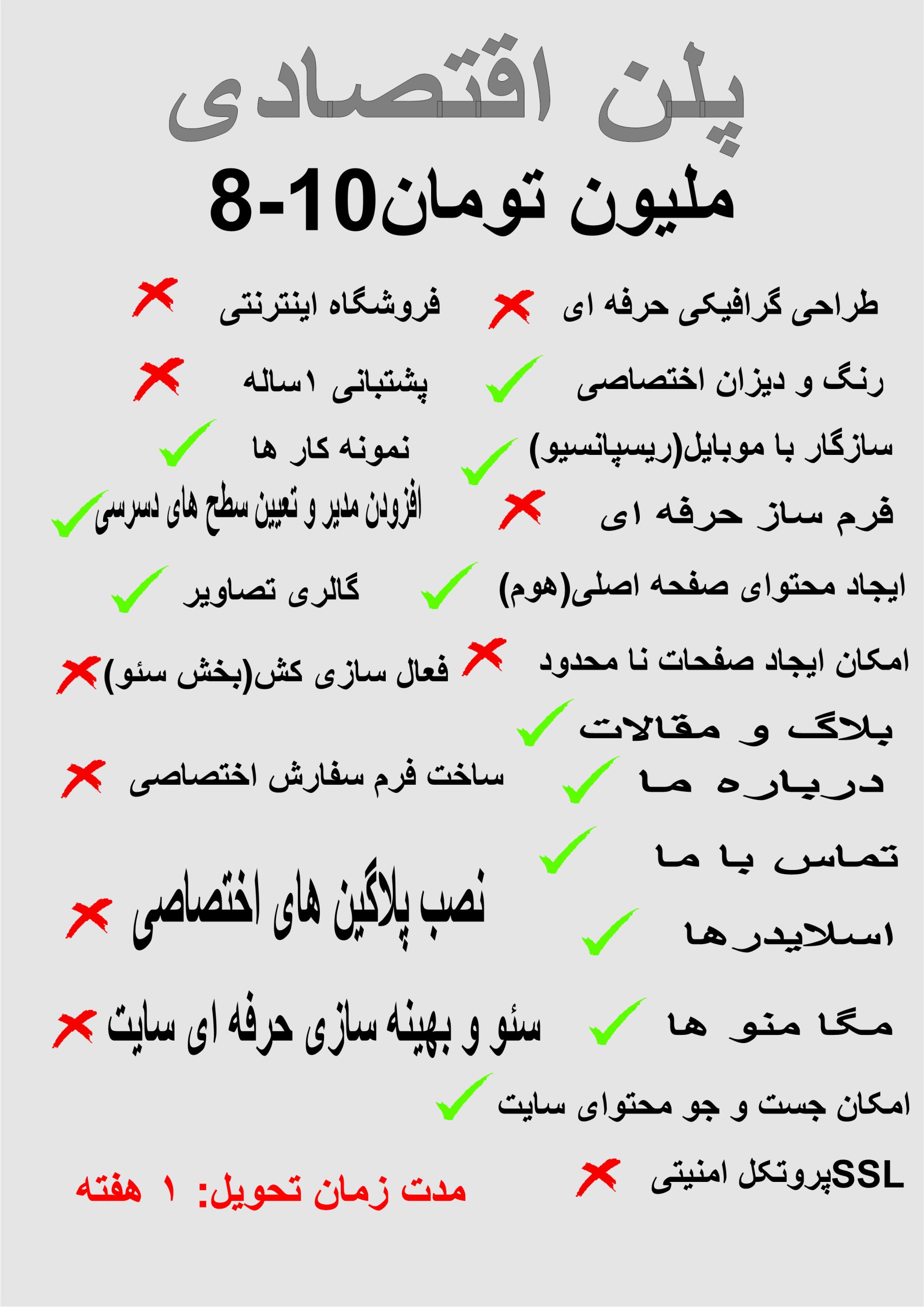 | پلن اقتصادی | 8-10 ملیون تومان | 1 ماه |